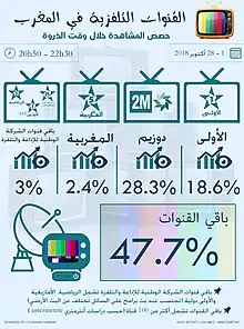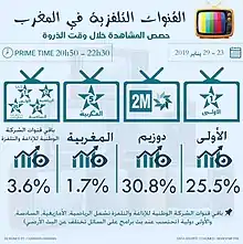 القنوات التلفزية (الوطنية) في المغرب: حصص المشاهدة في وقت الذروة (ما بين 23 و29 يناير 2019)