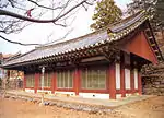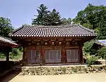20 ديسمبر 1962 | هو ضريح موجود في معبد بسوكسا وهو من الفترة الأخيرة لمملكة غوريو. بُنيت هذه القاعة في السنة الثالثة من حُكم الملك وو) عام 1377 . مع أن القاعة صغيرة الحجم إلا أنها تحتوي على بناء مصنوع بتفاصيل دقيقة أفضل من بناء قاعة مريانغسوجون الموجودة في نفس المعبد، فالجزء الأيسر والأيمن للقاعة مرسومٌ عليه لوحات جدارية تمَّ الإنتهاء من رسمها في عهد سلالة غوريو. رُمِّمت القاعة في عامي 1490 و 1493 (السنة 21 و 24 من حكم ملك شلا سونغجونغ).[25][26] |