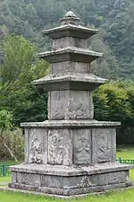 20 ديسمبر 1962 | هو باغودا موجود في معبد شلسانغسا مصمم على شكل ثلاث طبقات صخرية. يعود تاريخُه إلى فترة مملكة شلا. يحتوي على زخارف محفورة لزهرة اللوتس في أسفل الطبقة العُليا وثلاثة نقوش لبوذا محفورة في أعلاها. يتميز باحتوائه على منحوتات لنقوش في أعلاه وأسفله.[14] |