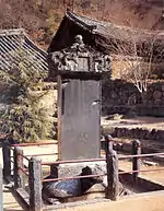 شاهد الراهب نانغهي | 36°20′41″N 126°39′20″E | 20 ديسمبر 1962 | شاهد الراهب نانغهي يقع في الشمال الغربي لمعبد سونغجسا ويُعتبر من أكبر شواهد مملكة شلا الكورية حيث كان الراهب المذكور فيه من الجيل الثامن لسلالة الملك ميول الذي تحول للرهبنة. قاعدة الشاهد على شكل جسم السلحفاة وجزء من وجه التنين وحول القرن قد تحطَّم بسبب عوامل الطقس والزمن، حاجبا التمثال مائلة لداخل العينين المفتوحة بينما يتميز الفم بنحتٍ لخُروج النار منه. تعرضت قاعدته الحجرية في الأسفل لضرر كبير بسبب وجوده مدفونًا تحت التراب ولكن في عام 1976 تمَّ إصلاحه. مُحاط الشاهد بنقوشٍ لزهرة اللوتس في أعلاه وأسفله فوق جسم السلحفاة وتتواجد أيضًا أنواعٌ أُخرى من النقوش وهي سُحبٌ متشابكة وتنين جميعهم ثلاثية الأبعاد منقوشةٌ ببراعة للشعور بقوَّة التنين والروح العظيمة.[11] | |