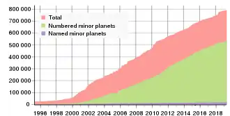 |CitationClass=تم تجاهله (مساعدة) - "Running Tallies – Minor Planets Discovered". IAU مركز الكواكب الصغيرة. مؤرشف من الأصل في 05 مايو 2019. الوسيط