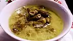 طبق شعبي فلسطيني، يتكون من العدس والبرغـل (القمح المسلوق) أو العدس والأرز وزيت الزيـتون، والبصل المقلي المحمر. ويشكل البصل المقلي مكونًا رئيسيًا عظيم الشأن في هذا الطعام. بعد غزو الأرز للمطبخ الشامي أصبح يستعمل الأرز بدل البرغل. | عموم فلسطين |