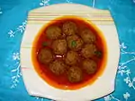 لحمة ضأن مفرومة مع بصل وبقدونس فرم ناعم، تكور كرات صغيرة، وتوضع في وعاء مع بطاطا مكعبات وبصل شرحات مع صوص البندورة، بعد نضجها تقدم مع طبق من الأرز الأبيض.[8][9] | |