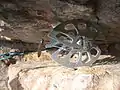 camming devices, Abalakov thread (V-thread) gearless ice climbing anchor[3][4] | ![]() Spring-loaded camming device | |