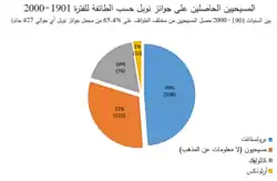 توزيع المسيحيين على فروع جوائز نوبل (بين الأعوام 1901-2000):[15]