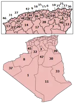 الولايات الجزائرية حسب الترقيم الإداري الحالي