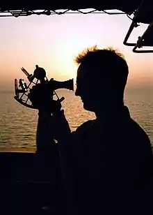 نظُم الملاحة الفلكية تعتمد على مراقبة مواقع كل من الشمس، والقمر، والنجوم. والنقطة الّتي يتم قياسها بواسطة آلة السدس، يكون عندها الجرم السماوي في أثناء دوران الأرض له ارتفاع وزاوية عن الأفق المرئي، هذا الارتفاع يمكن استخدامه لحساب المسافة منسوبة للأرض وتحويلها إلى خط موقع دائري[67]
