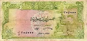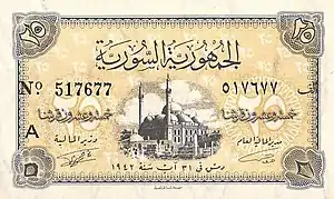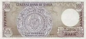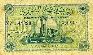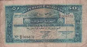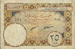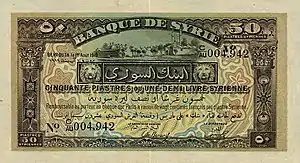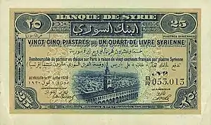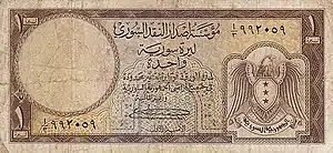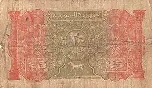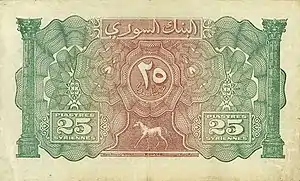 |CitationClass=تم تجاهله (مساعدة) - عدنان جروة (2013). العملات السورية - بدايات القرن العشرين إلى اليوم. بيروت: دار المراد. ISBN 9953406235. الوسيط