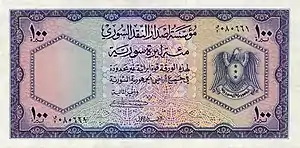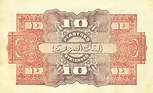 الألوان: الكتابة: (بالفرنسية: BANQUE DE SYRIE)