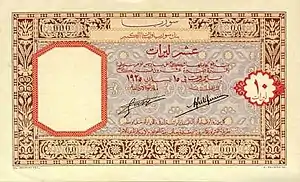 ملاحظات: هناك إصداران اثنان لهما التصميم نفسه ويختلفان في التوقيع أو تاريخ الإصدار.