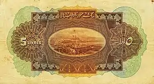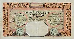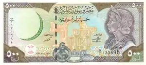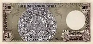 ![]() الوجه الأول لورقة فئة 500 ليرة والتي كانت تسمى (الطربوش). | ||||