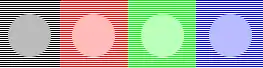 - إلى اليسار: يجب أن تضمحل الدوائر الملونة في الخلفية لو نظر إلى الشاشة عن بعد يتراوح بين متر ومترين، بخلاف ذلك أعد ضبط إعدادات غاما في شاشة العرض.
