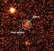 صورة مركز انفجار أشعة غاما 970228 وهو يقع في طرف أحد المجرات.