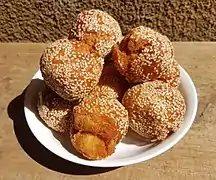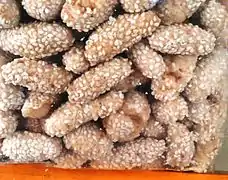 - جيان دوي - معجنات صينية مقلية مصنوعة من دقيق الأرز اللزج، مغطاة ببذور السمسم من الخارج ولها قوام هش ومضغوط