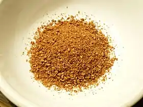 - Furikake - توابل يابانية جافة[7] يتم رشها فوق الأرز المطبوخ والخضروات والأسماك. تتكون عادة من خليط من الأسماك المجففة والمطحونة وبذور السمسم والأعشاب البحرية المفرومة والسكر والملح وغلوتامات أحادية الصوديوم .[8] [9]
