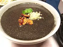 - حساء السمسم الأسود - حلوى صينية شهيرة من شرق آسيا متوفرة على نطاق واسع في جميع أنحاء الصين وهونغ كونغ وسنغافورة؟[6]
