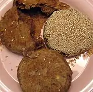 - كعكة بذور السمسم - كعكة مصنوعة من بذور السمسم، وغالبًا ما يتم دمجها مع العسل كمُحلي