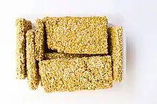 - حلوى بذور السمسم - حلوى من بذور السمسم والسكر أو العسل تشكل على شكل بار أو كرات، تحظى بشعبية من الشرق الأوسط من خلال جنوب آسيا إلى شرق آسيا.