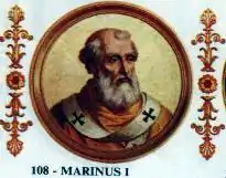 - عندما أصبح سيمون دي بروين البابا سنة 1281، اختار اسم مارتن ليُلقَّب به. ولكن في ذلك الوقت، كان يُعتقد خطأً بأنَّ مارينوس الأول ومارينوس الثاني يُدعيان مارتن الثاني ومارتن الثالث على التوالي، ولهذا السبب، دُعي سيمون دي بروين بالبابا مارتن الرابع.[34]