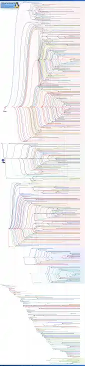 | Yggdrasil لينكس/غنو/X | واحدة من أقدم توزيعات لينكس، لم يتم تحديثها منذ عام 1995. |