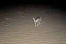 ثعلب الرمال![]() | Vulpus rueppelli | الكلبيات | ثعلب الرمال هو ثعلب أصغر حجماً من الثعلب الأحمر فيصل طوله إلى 80 سم تقريباً، وله ذيل طويل وكثيف، ولون فرائه باهت. يعيش ثعلب الرمال في المناطق الرملية ومشاهدته نادرة لقلة أعداده مع أنه يتجول بحثاً عن الغذاء. أعداده في تناقص مستمر وهو على وشك الانقراض. | [5] |