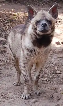 الضبع المخطط![]() | Hyaena hyaena | الضبعيات | للضبع المخطط بنية جسم قوية، وله فكان قويان يساعدانه على تهشيم العظام وفتح الجماجم. يعيش الضبع المخطط في المناطق الصحراوية والأودية والحرات، وقد يوجد قريباً من المناطق الزراعية، وهو يتحمل العطش لأوقات طويلة. يتعرض الضبع للصيد بشكل مستمر. | [5] |