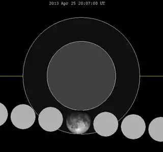 | 2013 أبريل 25 | 20:07 | جزئي | تنازلي | 112 | -1.012 | 1.012 | 0.021 | 32 | 14.21 | -14.4 | 19:51 | 20:23 | |||||