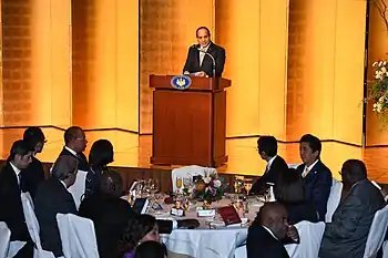 | 24 | أوساكا | 27 - 30 يونيو | شينزو آبي | حضور اجتماعات مجموعة العشرين بدعوة من رئيس وزراء اليابان بصفته رئيس الاتحاد الإفريقي. | [23][24] | |
