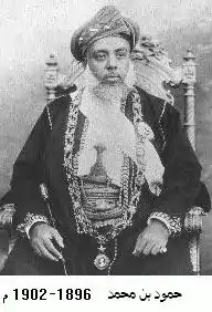 | 7 | حمود بن محمد | السيد حمود بن محمد السعيد. | ![]() | 27 أغسطس 1896م.[13] | 18 يوليو 1902م. | أصدر المرسوم النهائي بإلغاء الرق من زنجبار يوم 6 أبريل 1897م.[13] ولأجل ذلك منحته الملكة فيكتوريا ملكة المملكة المتحدة وسام الفارس. |