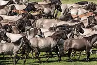 | Tarpan[بحاجة لمصدر] | Heck Horse | ![]() | طورت السلالة في حديقة برلين (Berlin Zo) لم يتم الإعلان عنها أو تسجيلها بعد في قائمة "نظام المعلومات حول تنوع الحيوانات المحلية"، غير مدرجة ضمن قائمة السلالات المهددة بالانقراض من طرف جمعية الحفاظ على السلالات المحلية النادرة والمهددة بالانقراض |