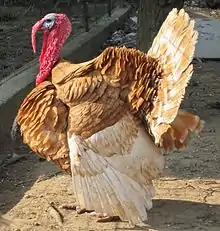 | Dindon Bronzé d'Amérique | برونزي زرقاوي، أحمر نمري أسود الجناحين. | ||