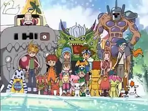 | جنجل | アポカリモン (أبوكاليمون) | الأشرار | هو أكثر المخلوقاتً شراً وقوّة، ظهر نتيجة إهمال في الجانب الآخر من الجدار الناريّ في عمق العالم الرقميّ، وهو من صنع سادة الظلام ومخلوقات الشر لأجل عرقلة مهمة الأولاد، يرتكز على قاعدة ضخمة تصميمها هندسي دقيق ينبعث منها أذرع كثيرة فيها مجموع أسلحة الوحوش الرقميّة، كان قد قضى عليه الأولاد السابقين الذين سبقوا أبطال السلسلة.[30] | ![]() |