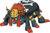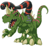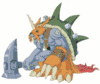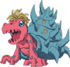 | صنديد | قريمون | بالغ | هو ديناصورٌ برتقالي عملاق، على الرُغم من أنه لونه برتقالي إلا أن اسمه في الإصدار الياباني مُشتق من اللون الرصاصي "Grey"، يملك هيكلاً صلباً يُحيط بجمجمته تمنحه قروناً حادة مُتماسكة وصلابة في الالتحامات، لديه خشونة كبيرة في المعارك، من عيوبه أنه ثقيل الجسم مما يُفقده المرونة وانسيابية الحركة، يُخرج قذائف لهبية على أعدائه. | ![]() |