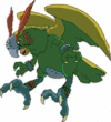 | عقاب | قارودامون | مثالي | هو طائر ضخم شكله مُستمد من أسطورة جارودا حيث أن نصفه جسم إنسان والنصف الآخر جسم طائر، لديه مخالب عملاقة وأيدي بشريّة، وله قدرات خارقة تفوق المُستويات السابقة. | ![]() |