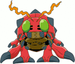 | إعصار | كابوتيريمون | بالغ | هو مخلوقٌ حشري إلكتروني، لديه قناع صلب حول رأسه، لونه أزرق، ولديه أجنحةٌ ضخمة وأربعة أذرع، يٌطلق كرة كهربائية صاعقة بدقة إلى الخصم. | ![]() |