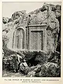 ![]() نقوش نهر الكلب لرمسيس واسرحدون ، في الصدر | |