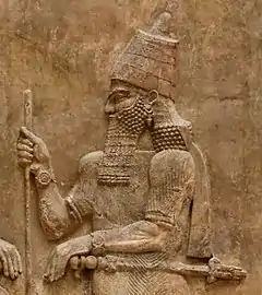 ![]() حجر بازلتي للملك الأشوري أداد نيراري الثالث من سابا. متحف الشرق القديم بإسطنبول، تركيا | |