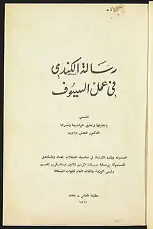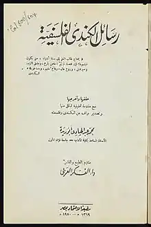 |CitationClass=تم تجاهله (مساعدة) - كوركيس عواد (1962). يعقوب بن إسحاق الكندي (حياته وأثاره). بغداد - العراق: مديرية الفنون والثقافة الشعبية بوزارة الإرشاد. صفحة 31-32. مؤرشف من الأصل (PDF) في 11 فبراير 2021. الوسيط