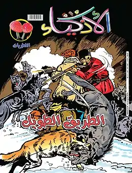 صدر العدد الأول منها عام 1980م، يُشرف عليها هنري ماتيوس. تُوجه المجلة إلى الشباب والأطفال، شخصيتها الرئيسة هي طرزان إلا أن هناك قصص أيضاً عن شمشون وبعض الأبطال.[1] عدد صفحات الكرتون تصل إلى 22 صفحة بالأبيض والأسود من بين 32 صفحة ذات قطع 17×24 سم. ليس للمجلة أبواب ثابتة ولا توجد إشارة إلى المؤلف أو الرسام الأصلي أو إلى الطاقم التحريري. تعتمد المجلة في بعض أعدادها على التسالي، المسابقات والأبواب العلمية: مثل مسابقة طرزان الكبرى.[1] مساهمة القراء محدودة للغاية في بعض الأعداد، ولا توجد ملاحق للمجلة ولا تنشر صوراً للقراء. سعر المجلة في لبنان 600 قرش لبناني، جمعت المؤسسة أعداد المجلات في مجموعات تضم كل منها 3 أعداد أو أكثر توزع معاً.[1] |