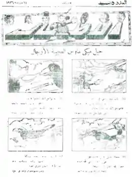 قطع المجلة 24×17 سم وشعارها: "مجلة النشء الجديد في العالم العربي" وهو الشعار نفسه الذي ينتمي إلى مؤسسة بساط الريح. تعتمد المجلة في المقام الأول على القصص الكرتونية في 37 صفحة بالأبيض والأسود عدا الغلافين. صدرت في منتصف السبعينيات وليس هناك إشارة إلى المؤلف أو الرسام. تخلو المجلة من التسالي والمسابقات. تشمل إعلاناتها مطبوعات أخرى صادرة عن المؤسسة نفسها. سعر النسخة عام 1979م هو 150 قرشاً لبنانياً.[1] | |
