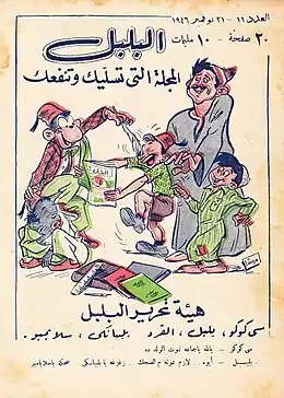 البلبل | أواخر عقد 1940 | مجلة البلبل هي مجلة مصرية أسبوعية صدرت عن دار الجيب في أواخر أربعينيات القرن العشرين. صاحبتها ورئيسة تحريرها إجلال حافظ، صدر العدد الأول منها في سبتمبر 1946م، ليست هناك أسماء أخرى في ترويسة المجلة غير رئيس التحرير. القطع 28×21 سم، توجه إلى الأطفال ابتداءً من سن العاشرة.[1] |