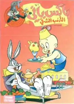 باغز باني | 1997م | مجلة باغز باني هي مجلة سعودية التوزيع، تصدر كل أسبوع عن شركة يونغ فيوتشر المحدودة اليابانية، وهي مستوحاة من شخصية الأرنب باغز باني، التي تمتلك حقوقها شركة وارنر بروز، تعتمد على نشر قصص الأرنب الكرتونية، وعلى شخصية نيتي تونز صديق الأرنب، بالإضافة إلى صفحات تلوين، وتسالي، عدد الصفحات 28 منها 24 صفحة كرتونية ملونة، قد تستغرق أكثر من قصة كرتونية، ليست هناك إشارة إلى طاقم التحرير، صدر العدد الأول عام 1997م، لكن المؤسسة نفسها تصدر العديد من المجلات المتشابهة مع اختلاف القطع، منها: "نقار الخشب"، "الكونج فو" "توم وجيري" تقوم شركة تهامة السعودية بتوزيع المجلة، قطع المجلة 24×17سم لا تنشر المجلة أي مساهمات من القراء، ولا تنشر صوراً لهم، لكن هناك وللمرة الأولى، إشارة باللغة الإنجليزية إلى أسماء المؤلف، والرسام، وأيضاً إلى الشخص الذي قام بتلوين القصص وهي من المرات القليلة التي تظهر فيها هذه الظاهرة في مجلات الأطفال المترجمة، تخلو المجلة من الإعلانات ومن إشارة إلى القصص التي بالداخل، ليست هناك مساهمات من القراء، ولا صور لهم، أو تسالي ولكن هناك صفحات تلوين، سعر النسخة في السعودية 5 ريالات، وفي قطر ريالين، وفي الكويت 450 فلساً، وفي مصر 1,5 جنيه. |