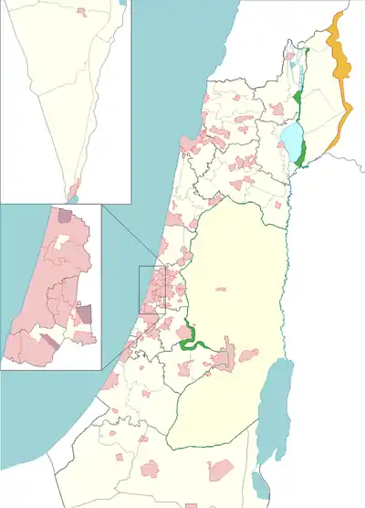 - ^ أب: مدينة عربيَّة أساسًا. هُجِّر مُعظم أهلها بعد حرب سنة 1948م، وسكنها اليهود بكثافة.