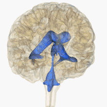 الصورة الصغيرة ذات الخلفية الحمراء تبين مكان قطع الشريحة من الدماغ.