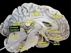 - المسال الدماغي يُعرف أيضاً باسم (بالإنجليزية: Cerebral aqueduct) أو مسال سلفيوس (بالإنجليزية: aqueduct of Sylvius) أو " قناة سلفيوس" ، و هو قناة ضيقة تقع ضمن الدماغ المتوسط وتصل بين البطين الثالث مع البطين الرابع للدماغ. إن انسداد هذه القناة يسبب مواه الرأس.