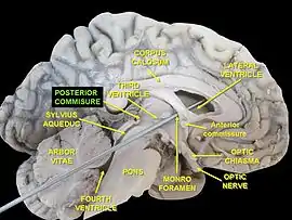 - الصوار الخلفي المخّي (بالإنجليزية: Posterior Commissure) و يُعرف أيضاً باسم (بالإنجليزية: epithalamic commissure). هو حزمة مستديرة من ألياف بيضاء تعبر خط الوسط على الجانب الظهري من الطرف العلوي للمسال الدماغي ، و هو مهم في إسْتِجابَة حَدَقَة العين للضوء (بالإنجليزية: Pupillary light reflex) على الجانبين. انظر صوار (بالإنجليزية: Commissure).
