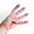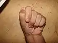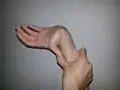 انثناء ظهراني أو ثني خلفي (dorsiflexion) لليدان.