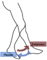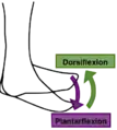 - السهم الذي يشير لأعلى يُبين اتجاه حركة قدم في حالة انثناء ظهراني (أو ثني خلفي) (dorsiflexion).