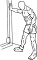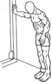 تدوير الذراع (العضد) قريباً إلى داخل الجسم في التمرين الموضح بالرسم ، مثال على الدوران الداخلي.