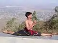 وضع الإنفراج الأمامي في اليوجا (front split) مثال على تبعيد الساقين إلى الأمام وإلى الخلف من عند الورك.